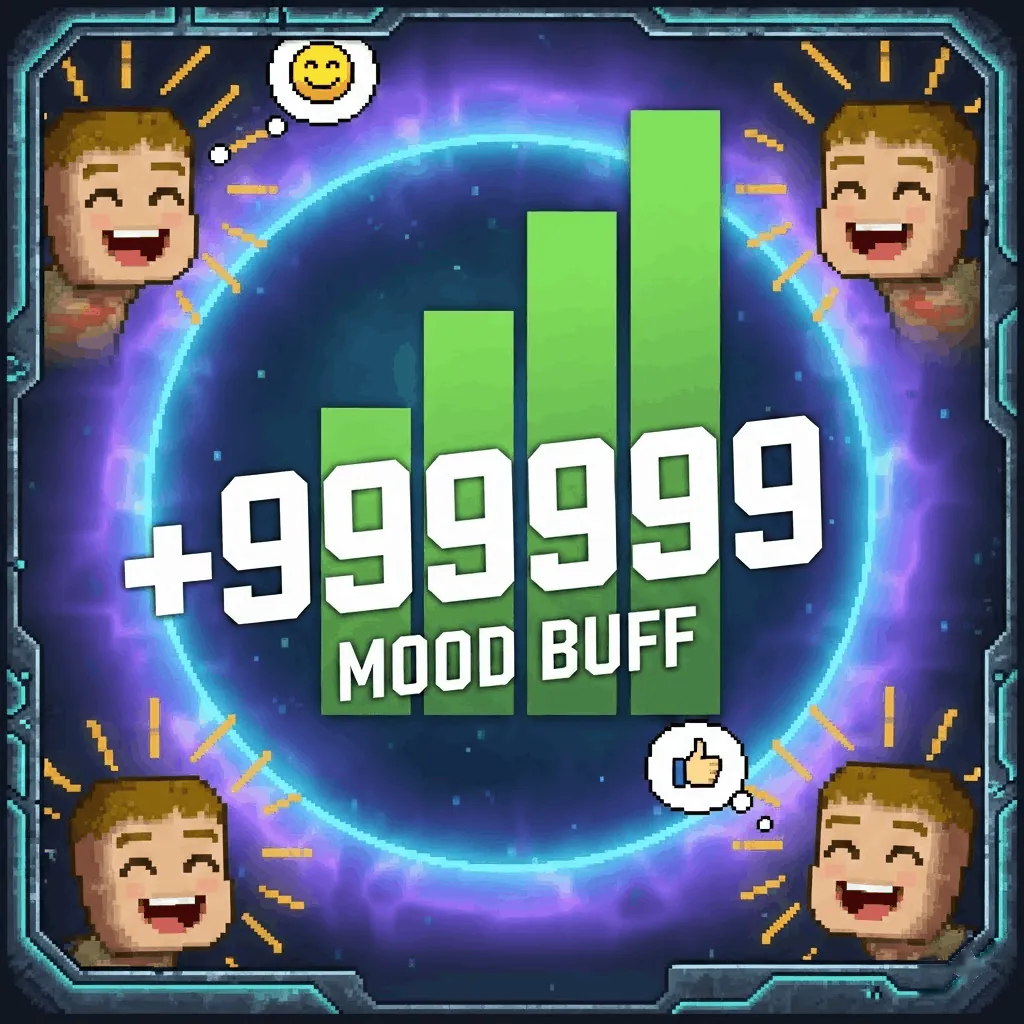 Dev palette tool that applies a permanent +9,999,999 mood buff to the clicked pawn. The buff is persistent and does not decay. Open Dev Mode, then Debug Actions > Pawns > Give mood buff +9,999,999. Click a pawn to apply the buff.
