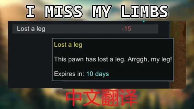 你有没有觉得你的殖民者对失去四肢或用假肢代替四肢的反应不太恰当?有了这个MOD,他们会的!当你的棋子失去手指、脚趾、手臂或腿时,他们会感到失落和悲伤。相反,当这些丢失的部件被替换或升级为假肢时,他们也会感到宽慰和幸福。