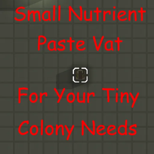 1x1 version of the Nutrient Paste Vat that stores 100 meals. Yes, there is a mod that does this already, don't care. Didn't satisfy my needs so I made my own.