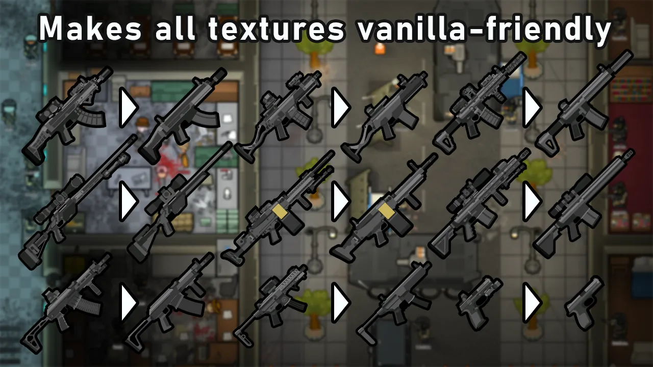 Retextures and renames all weapons from Urban Defenders Arsenal to be more inline with vanilla and the Vanilla Weapons Extended aesthetic.