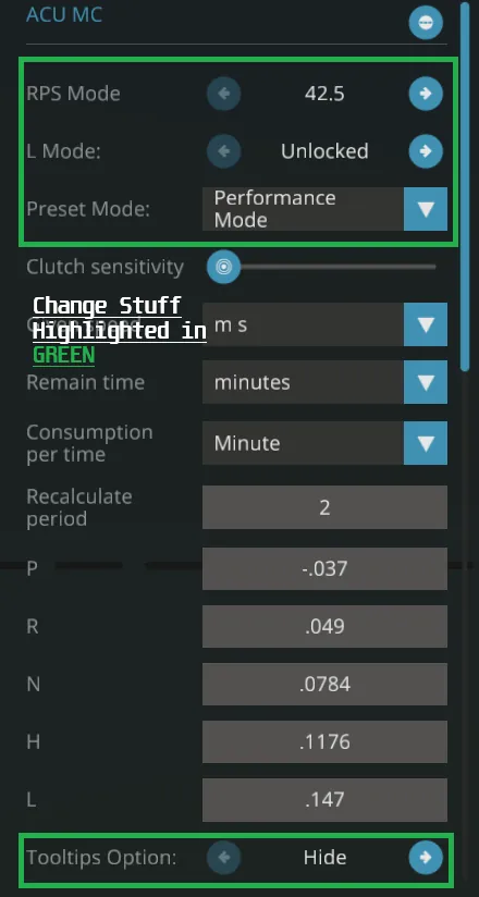 [b] ECO and SPORT, as listed below, were tested on the 32.5RPS Setting[/b]