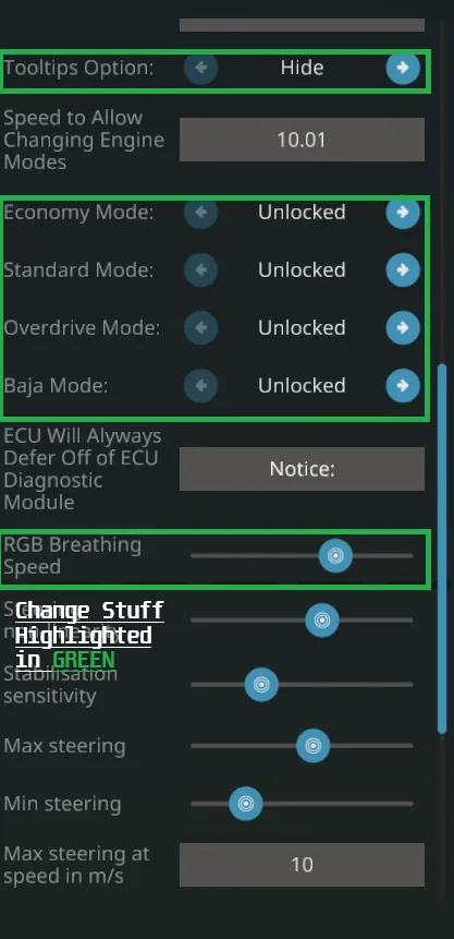[b] This ATV starts will the features listed below- Connecting the [url=https://steamcommunity.com/sharedfiles/filedetails/?id=3482706617] EQC[/url] Module will reset them: [/b]
