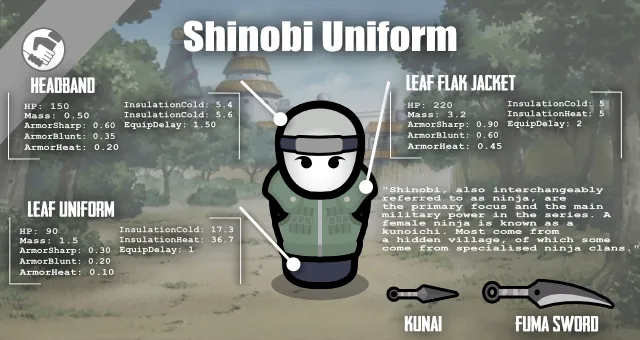 - Weapon(Kunai,Tanto,Ninjato,Fuma sword)