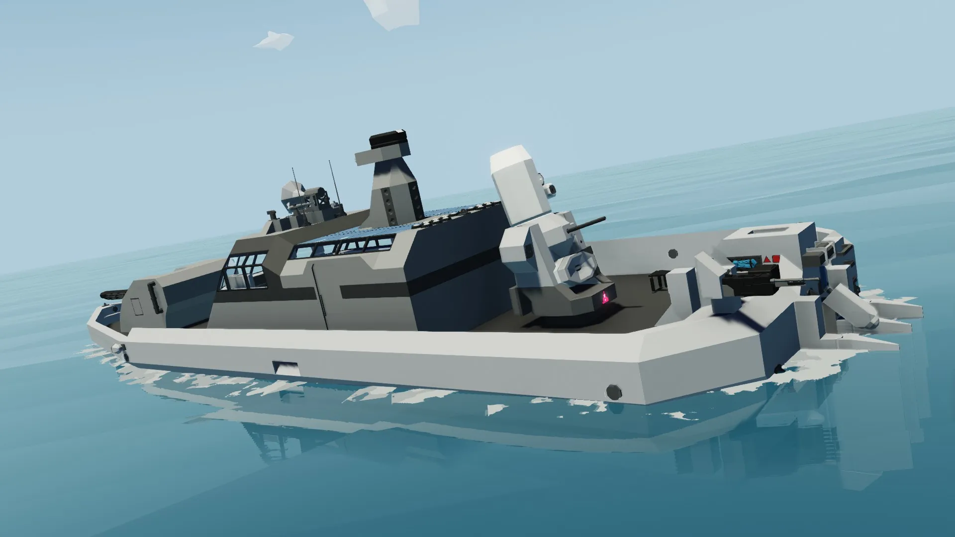 It employs unique FDD Technology (Frantic Deactivation Defense) which upon detecting a friendly laser beacon with a friendly wavelength, the CIWS will automatically power down.