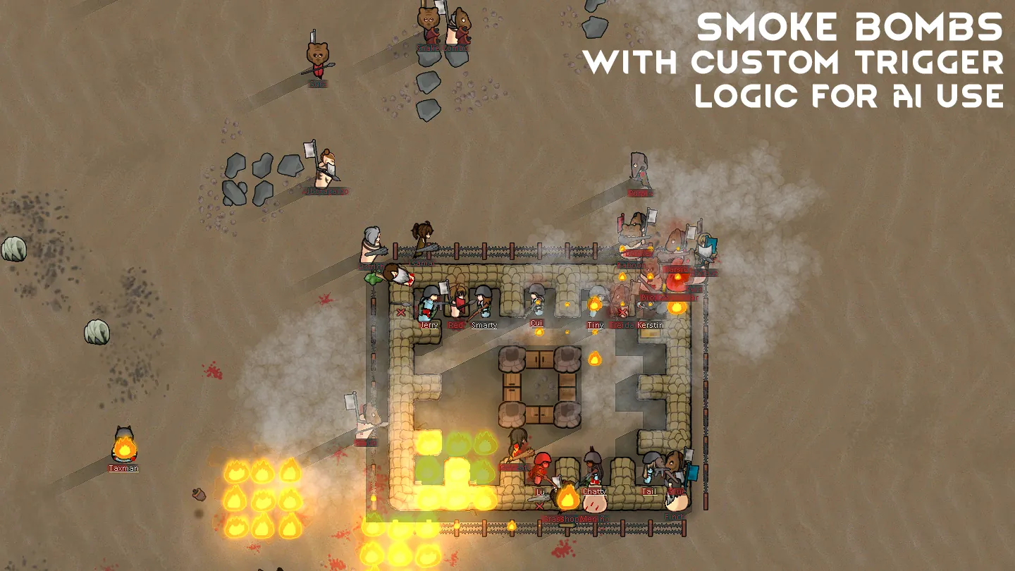 [i]Biotech's flamebow has been changed from AoE to single tile ignition and made usable by all tribes. Molotovs now fulfill the role of close range AoE fire threat, while the flamebows are meant for medium range high rate of fire.