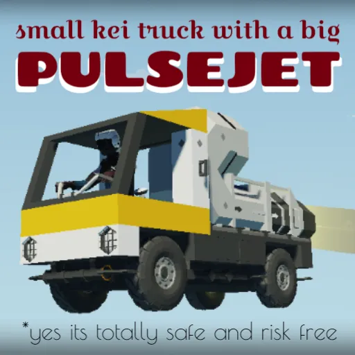 Because its been so long since i made a silly vehicle, here's a smol electric kei truck with a big pulsejet bolted to the back and enough seats for all your friends, go have fun!