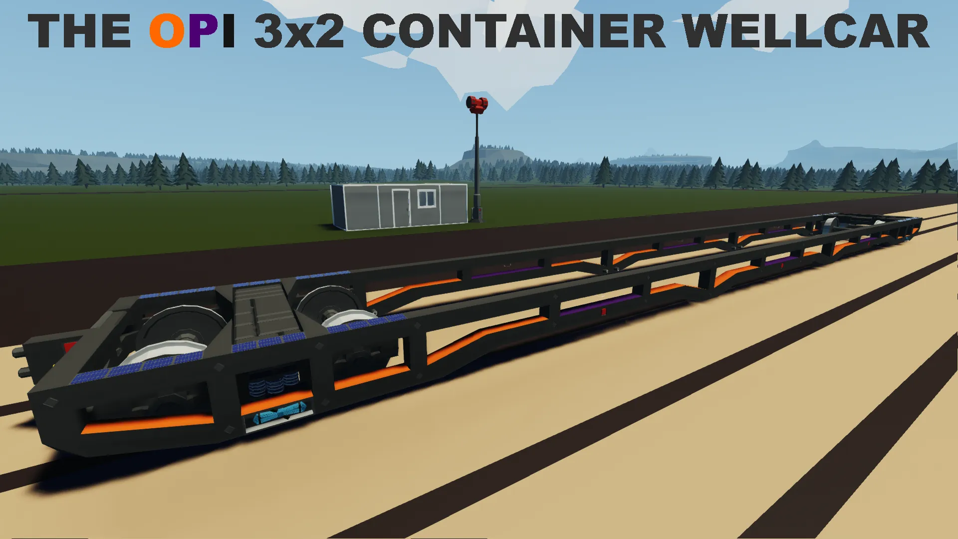 Introducing the new OPI 3x2 Wellcar. This fantastic new piece of rolling stock technology is able to store up to six standard ISO containers in a three-long, two-high configuration. Additionally, the wagon is compatible with the TCP standardisation system, including its Brakes, Front and Rear Taillights, Warning Lights, and Work Lights.