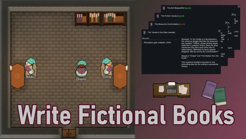 This mod adds two recipes to [url=https://steamcommunity.com/sharedfiles/filedetails/?id=2193152410]Vanilla Books Expanded[/url]'s writer and type writer table.