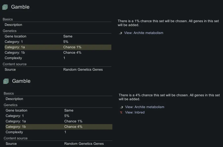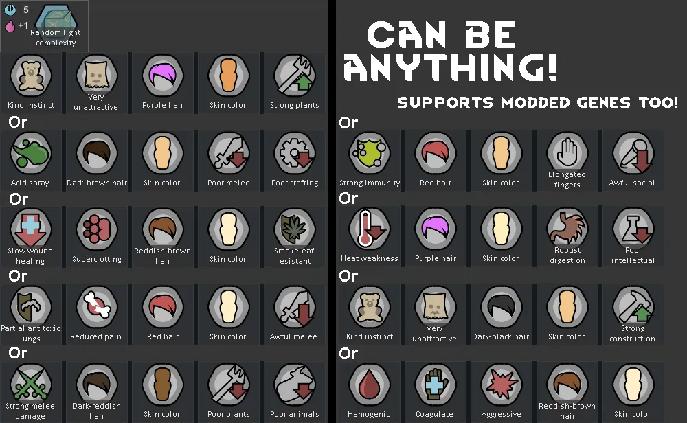 Some of these genes will not display anything in base game rimworld. For example, "Random Wings" will only display something if you have a gene from a mod that gives wings