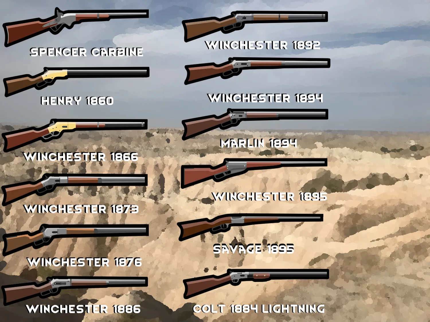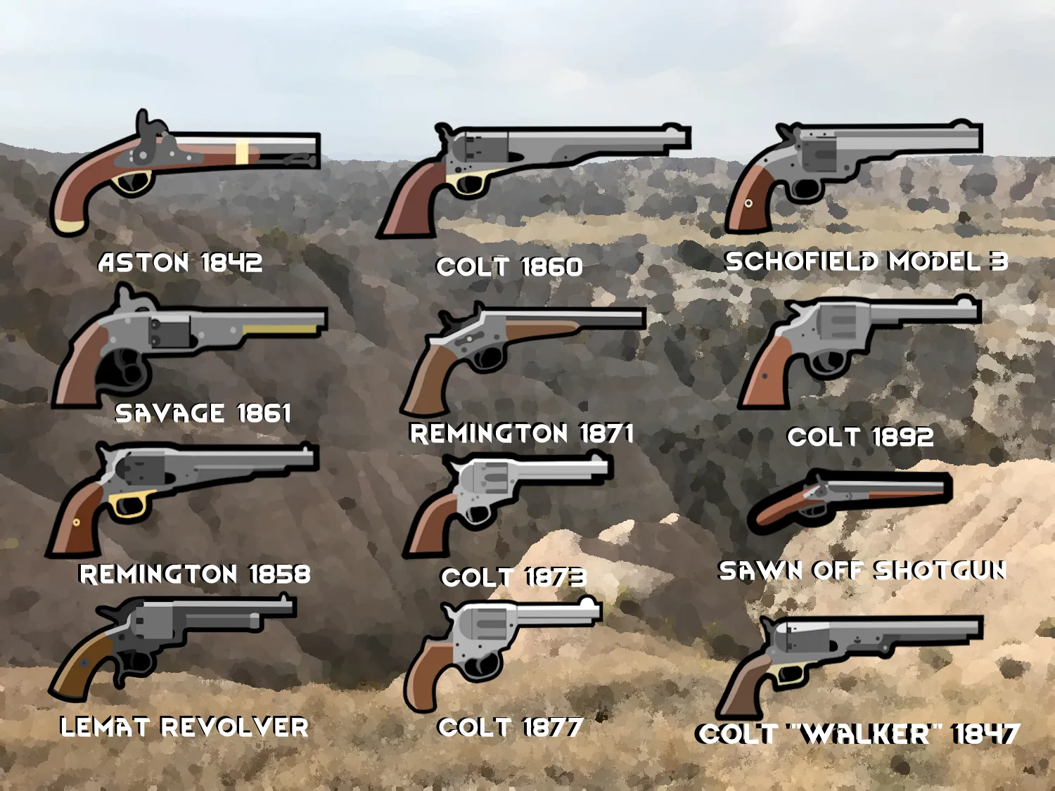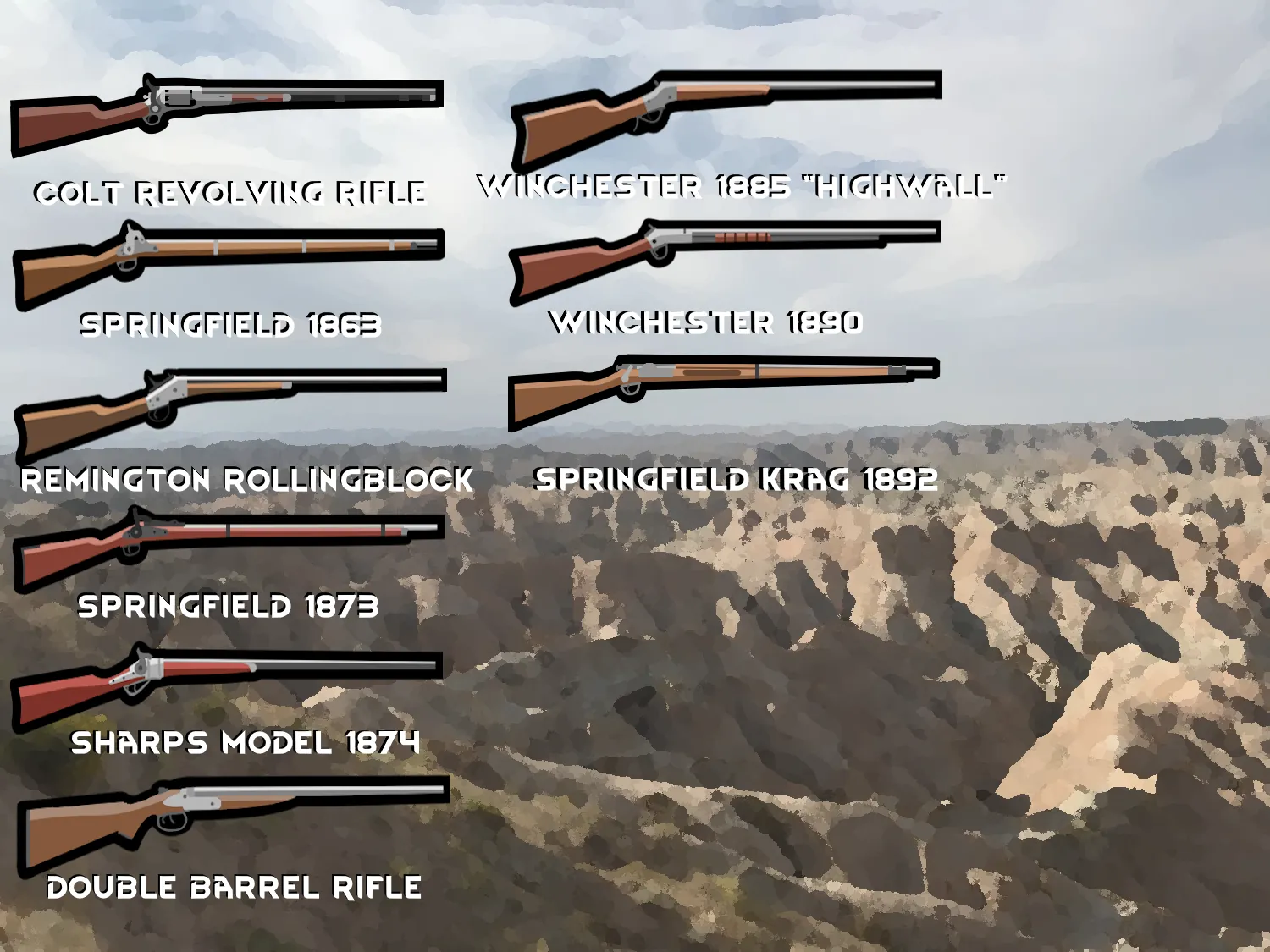 From powerful single shot rifles to the iconic colt single action army, this mod adds every notable firearm from this period that I could think of.