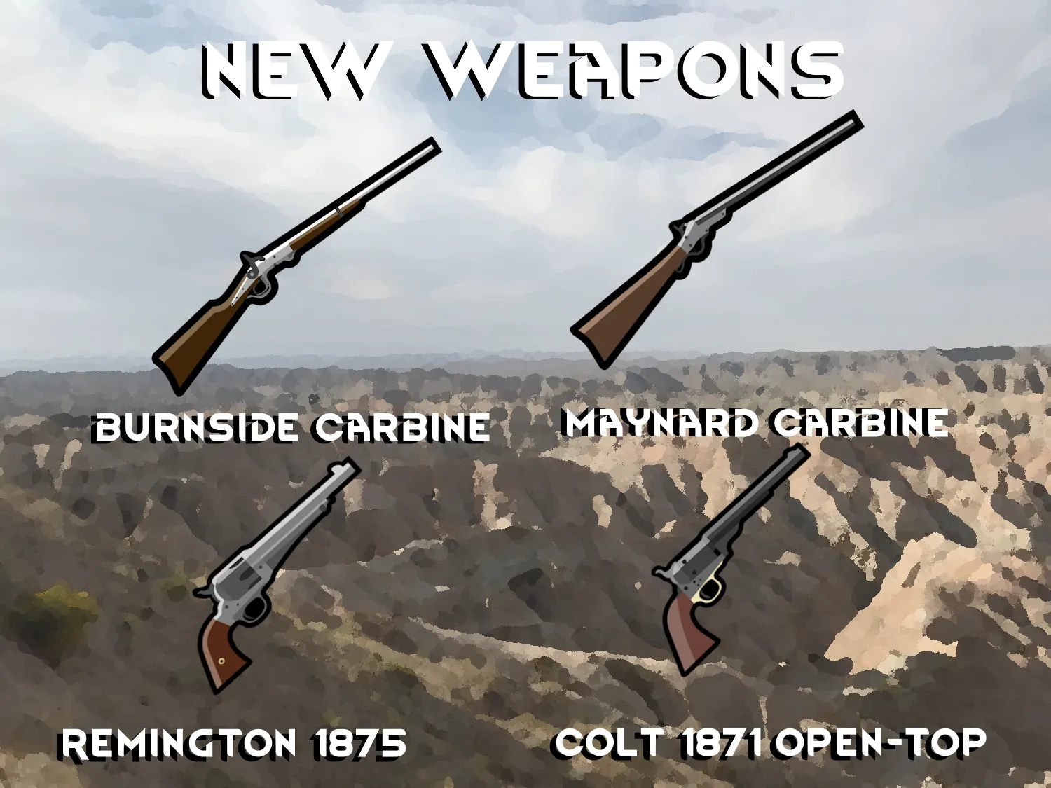 -Added 4 new weapons: Burnside Carbine, Maynard Carbine, Remington Model 1875, and the Colt 1871 Open Top