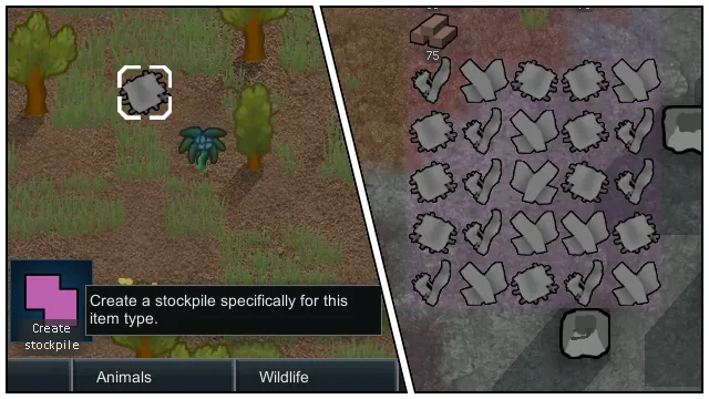• Selecting any haulable item gives a new command to create a new stockpile just for that item type