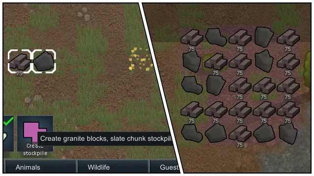 • Select multiple items at once and create a stockpile for all those items