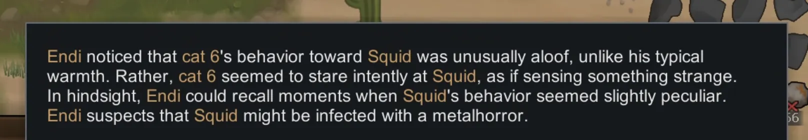 Give your cats and yorkies a chance! An animal nuzzling can reveal a metalhorror infection with a moderate chance. Bonded animals nuzzling their owners have much higher chance at detection.