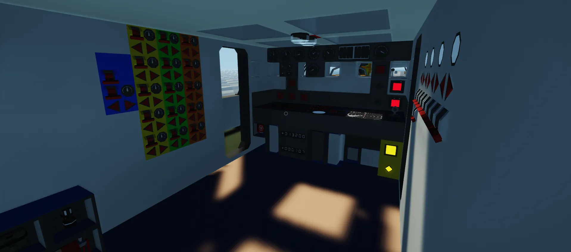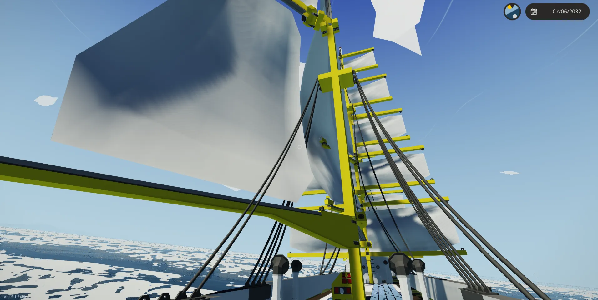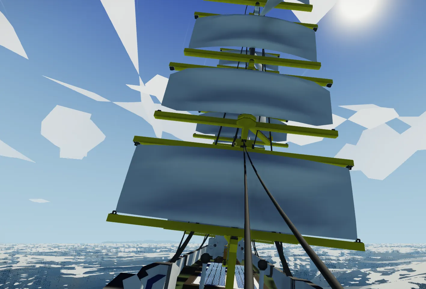 - Position the Sails with the Arrow buttons and set them with the flip switches in the Deckhouse