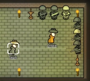 3. Oh ♥♥♥♥ it's a raid! Draft your colonist and use the Equip from rack command. Your colonist will run to their rack and grab the items from it