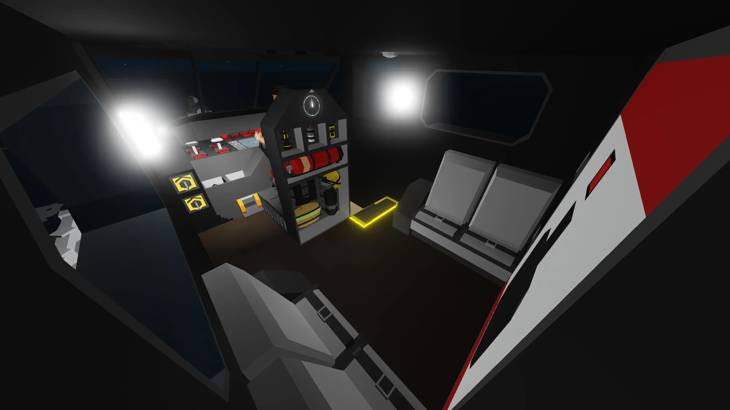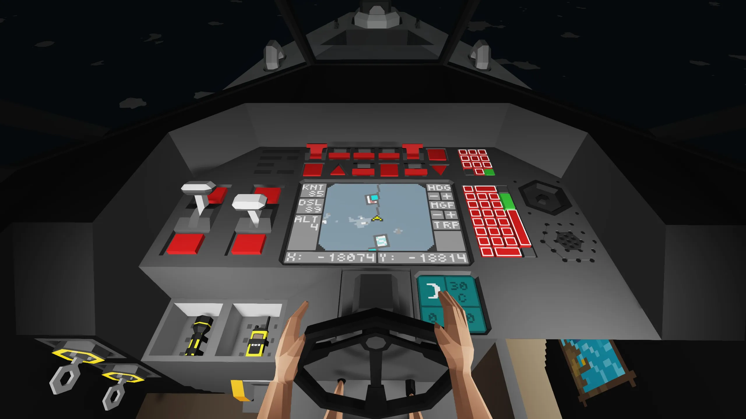 Equipped with a rotating map display for easy navigation, radar with 6 km of range, transponder locator and radio communication with other crews or your own.