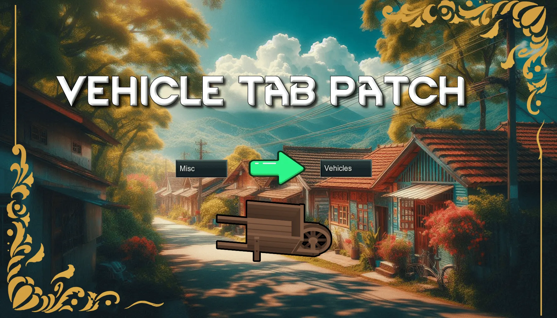 For example, mods like Simply Wheel Barrow (Vehicle) and Simply Bicycle (Vehicle) place their vehicles in the "Misc" tab, but this patch moves them to the correct "Vehicles" tab.