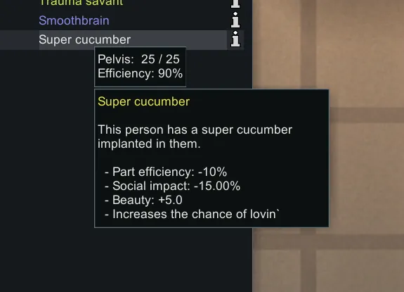 [*] Sucer Pucumber - An implantable Surer curumber to give you the all the powers of a pumer sucumber.