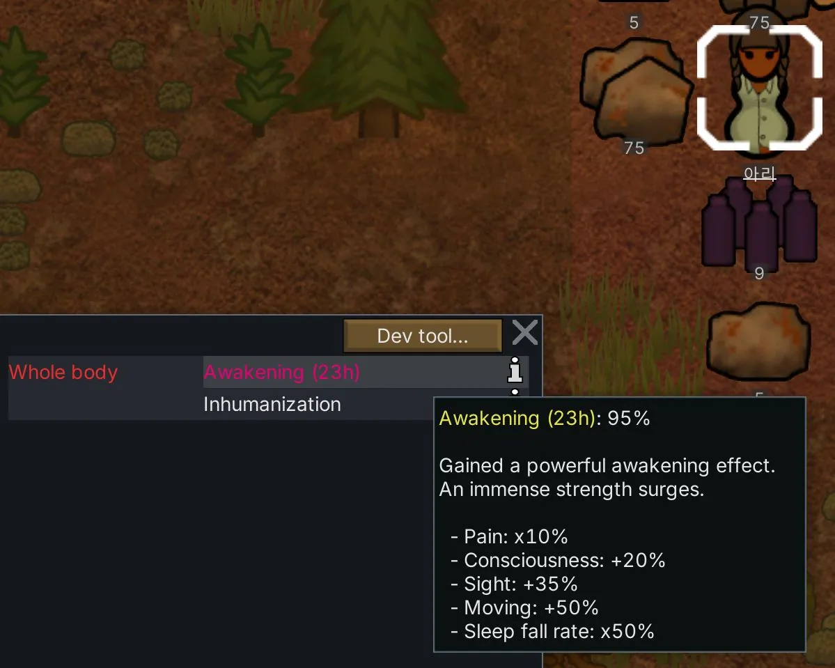 '부자연적인 물약'을 먹을 경우 '몰인간화'되며 약24시간 추가 버프가 유지됩니다.
