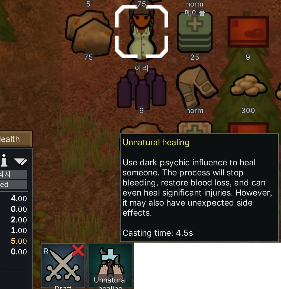 버프가 유지되는 동안 '부자연적인 치유'를 사용할 수 있습니다(쿨타임 없음).