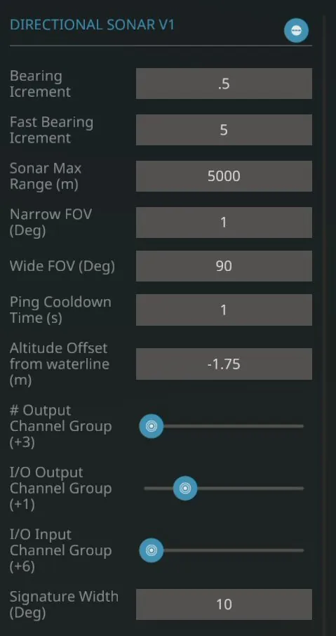 [*] Altitude offset from waterline - From your vehicles waterline measured down to where the sonar is, is this value. This will be a negative value as it is measured from the perspective of "altitude" and not from "depth"