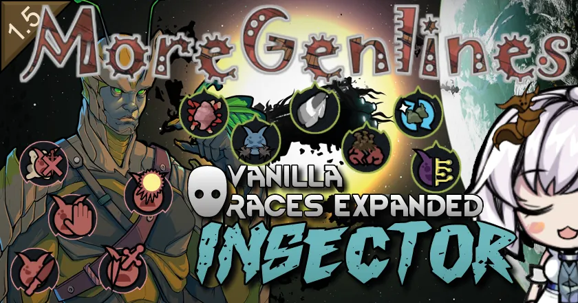 To be honest, I really enjoy the "Genlines" feature in the mod Vanilla Race Expanded - Insector. It allows me to meticulously construct my hive, but the downside is that I found the original Genlines in VRE-Insector somewhat limited. That's why I created this mod, which introduces 6 new Evolution Genes, 12 Degrade Genes, and excitingly, 7 Architect Genes. Yes, I've added the concept of Architect Genes; essentially, these are Genlines that become available for selection and use only after certain Evolution Genes are unlocked. Each Architect Gene offers powerful Abilities – and indeed, the new Evolution Genes I added also come with some Abilities. Let me briefly introduce a few of these Genlines here; for more details, please check in-game.
