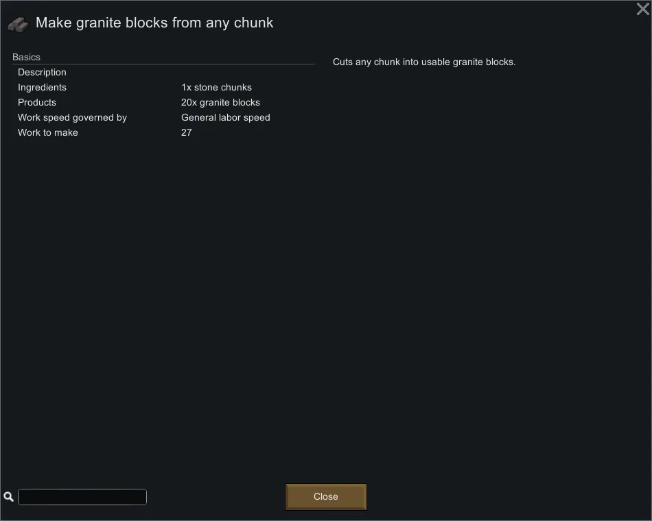 Adds recipes to cut any stone block from any stone chunk and convert any stone block to any other (mixing ingredients allowed like meals).