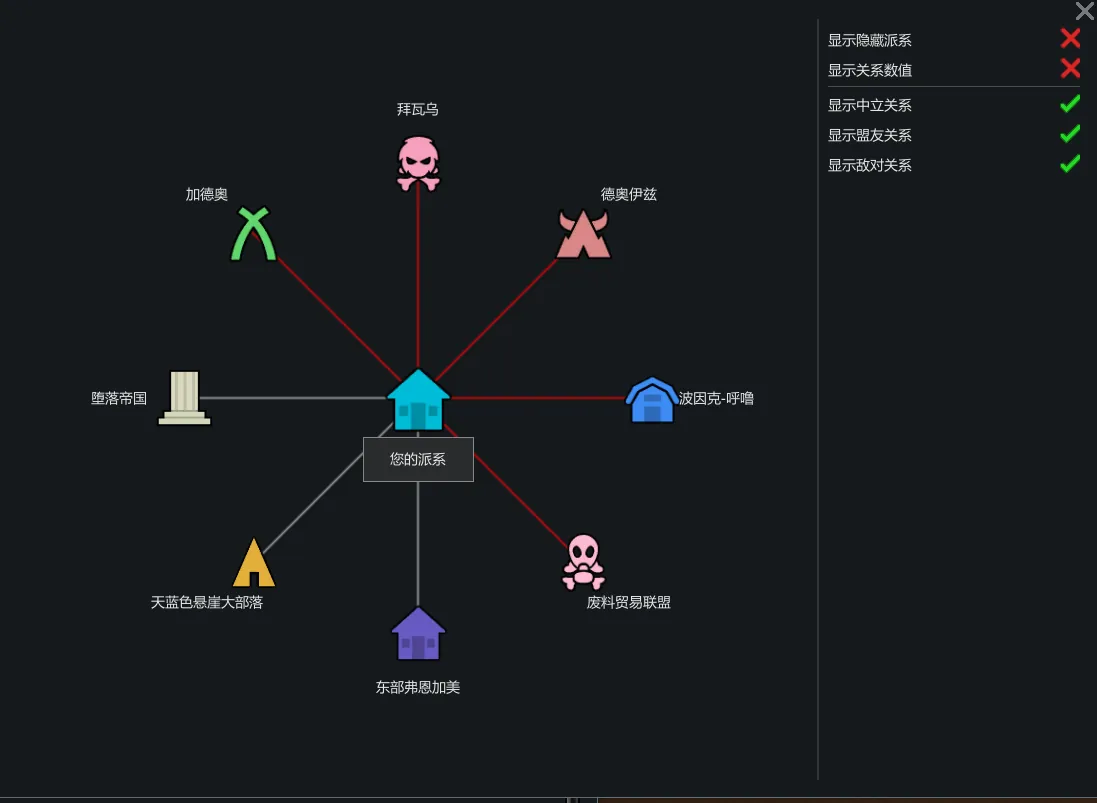 ——繁简汉化,未经允许,禁止搬运! Faction Interface的汉化 模组简单介绍: 这个模组在派系菜单中添加了一个新按钮,通过单击该按钮,您将切换到扩展视图模式。 派系使用彩色线连接,表示所选派系与圆圈中派系的关系。 ------------------------------------------------------ 汉化不易,动动小手给个免费的赞吧!