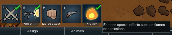 - Follow the extraction step. Click the designated infusion again. It should now be highlighted with a red background instead. One of your crafting colonist will remove it when they can.