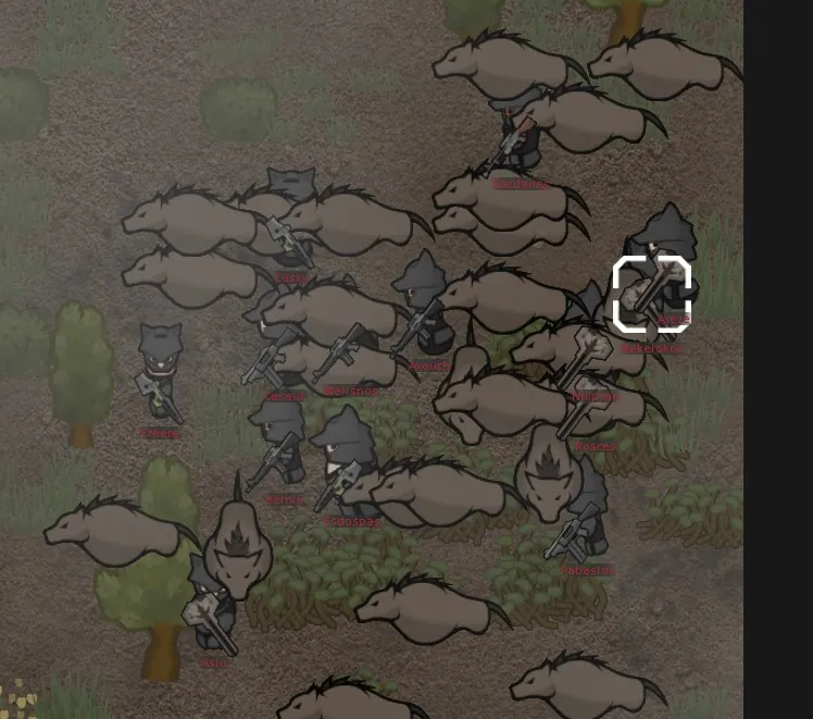 Kynigoi ("Hunters" but also literally hound-leaders) are Janissary-equivalent pawns with a higher animals skill and a slightly lower shooting skill. They spawn with the same weapons and armor as Janissaries, but replace the recon helmet with a marine helmet. If Ideology is installed, the Wolf-head Animalist style will be used for this helmet. They also occasionally carry meat to feed to their pets.
