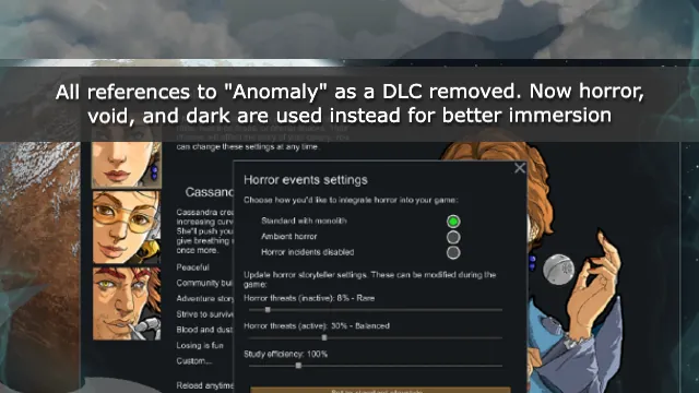- Anomaly storyteller settings are now called "Horror settings"
