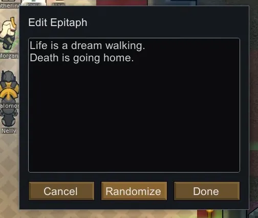 Add epitaphs to the game. When you buried your hero in a grave / sarcophagus, you’re able to choose or write an inscription to memorialize them.