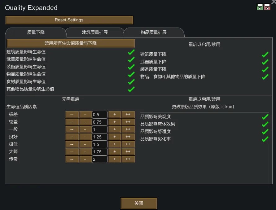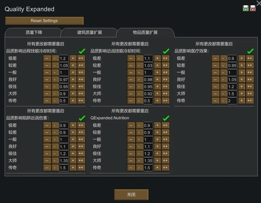 ——繁简汉化,未经允许,禁止搬运! Quality Expanded的汉化 模组简单介绍: 提供各种可配置选项,以增加质量的影响。 ------------------------------------------------------ 汉化不易,动动小手给个免费的赞吧!