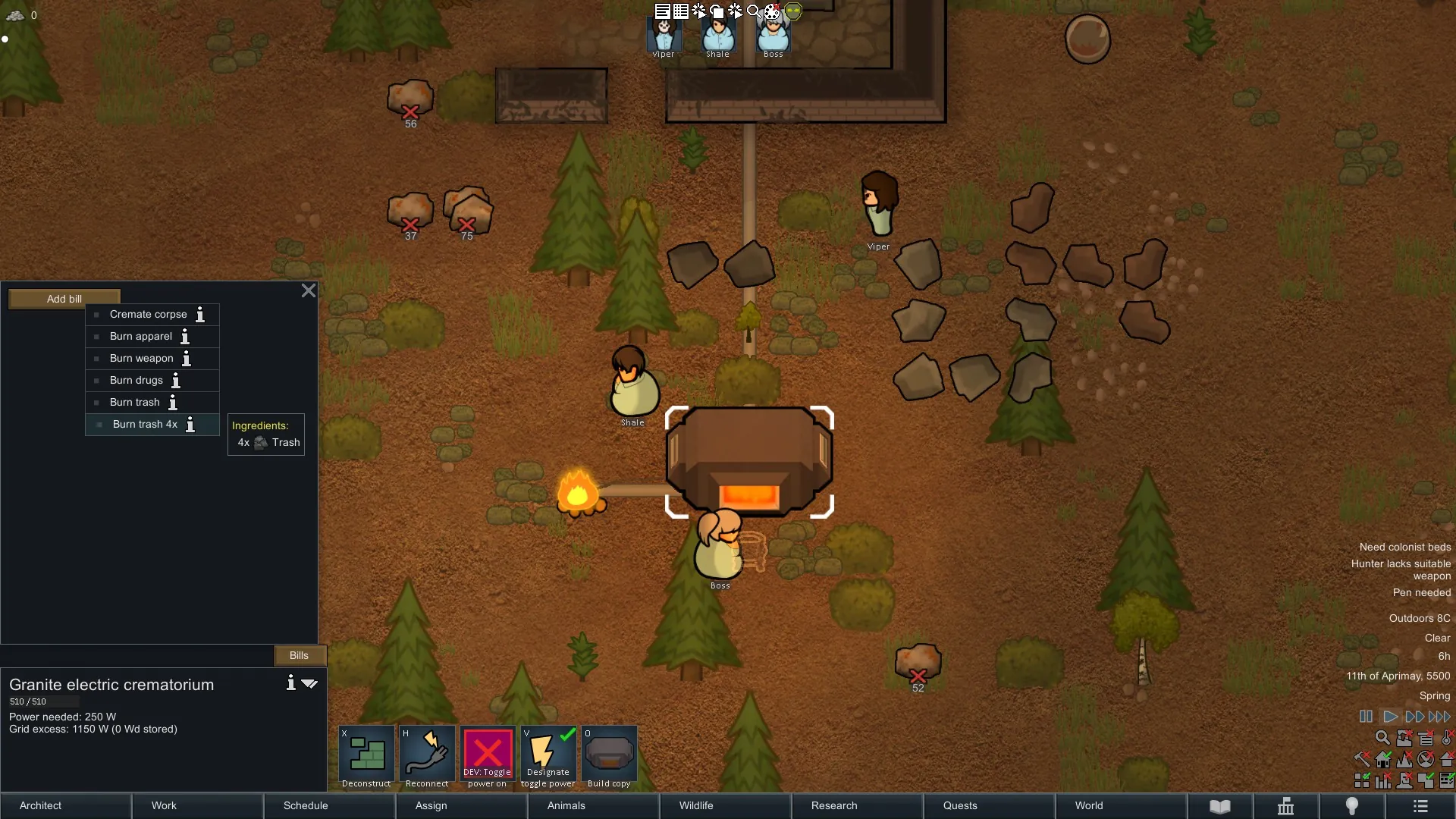Allows you to dispose of trash by burning them at either a campfire or at a crematorium.