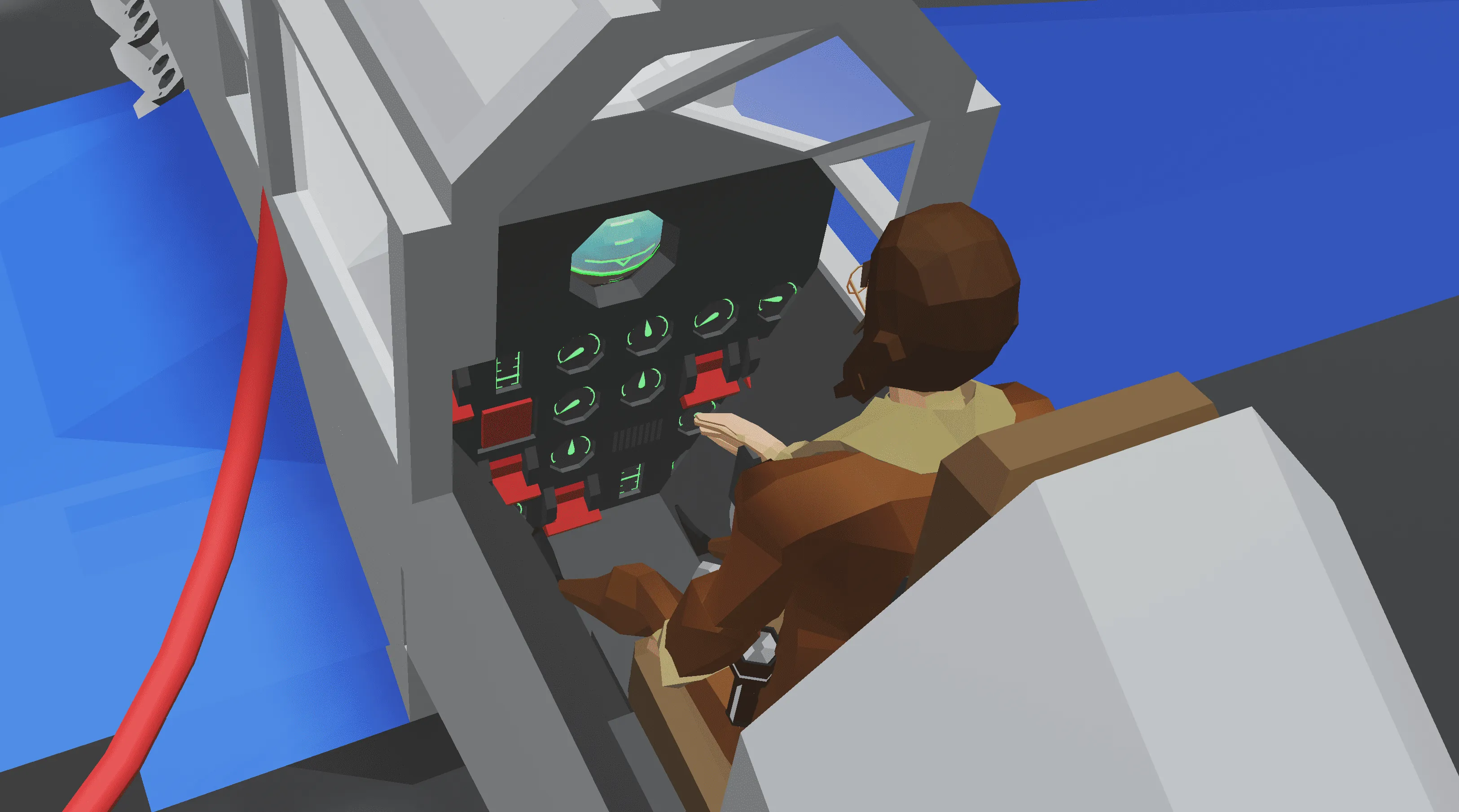 [*] Enter the pilot’s seat. Flip the [b]ignition switch[/b] (center panel).