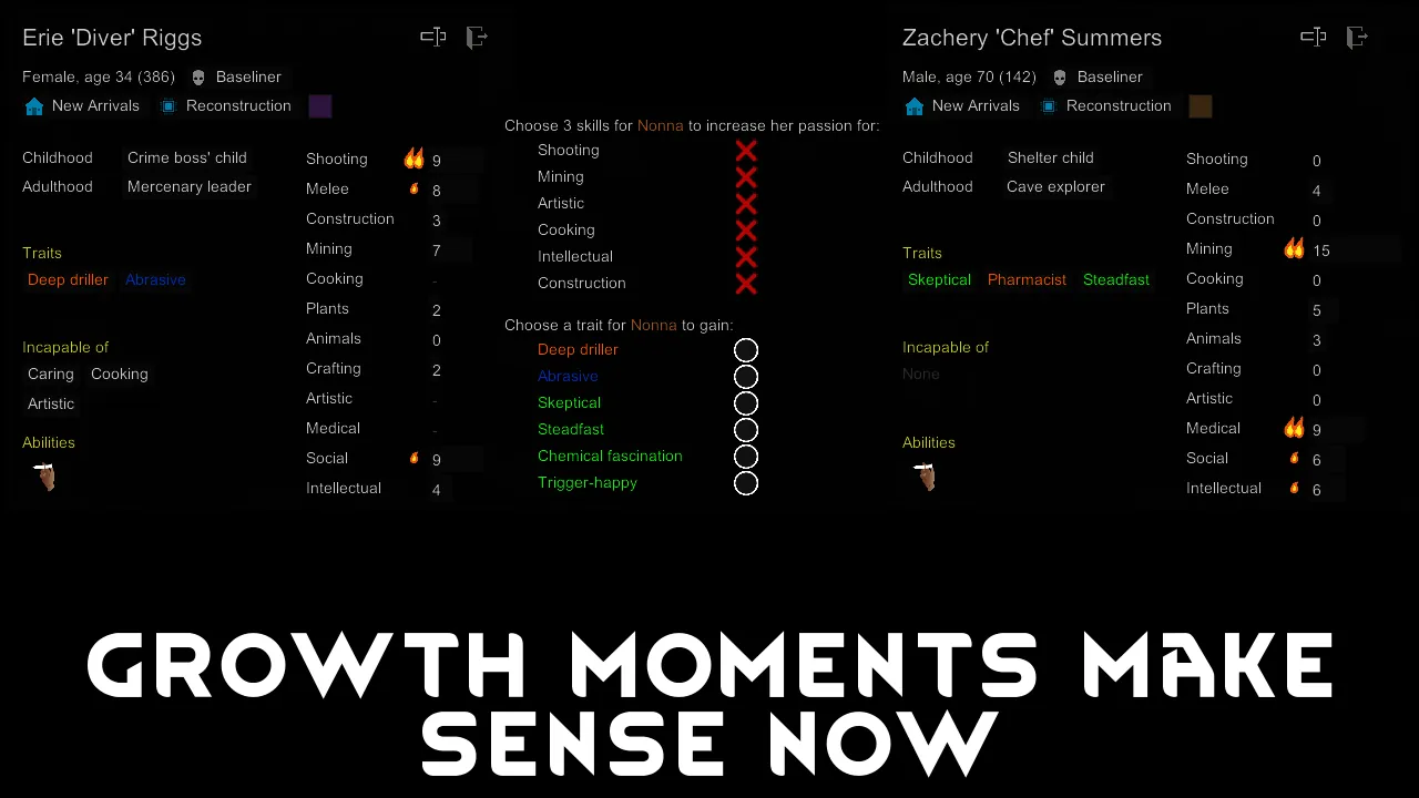 This mod fixes that! Every growth moment, your trait/passion choices have a configurable chance to take some of your parents' traits/passions if they're on the map!