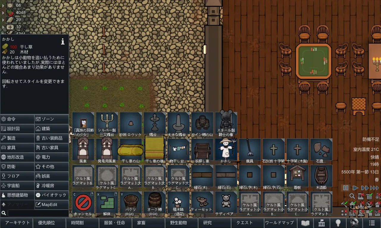 ・風車や釣り船や積み上げられたワイン樽や墓地用の十字架やろうそく台や干し草の山、その他のレトロスタイルの絵画などの装飾品類を追加します。