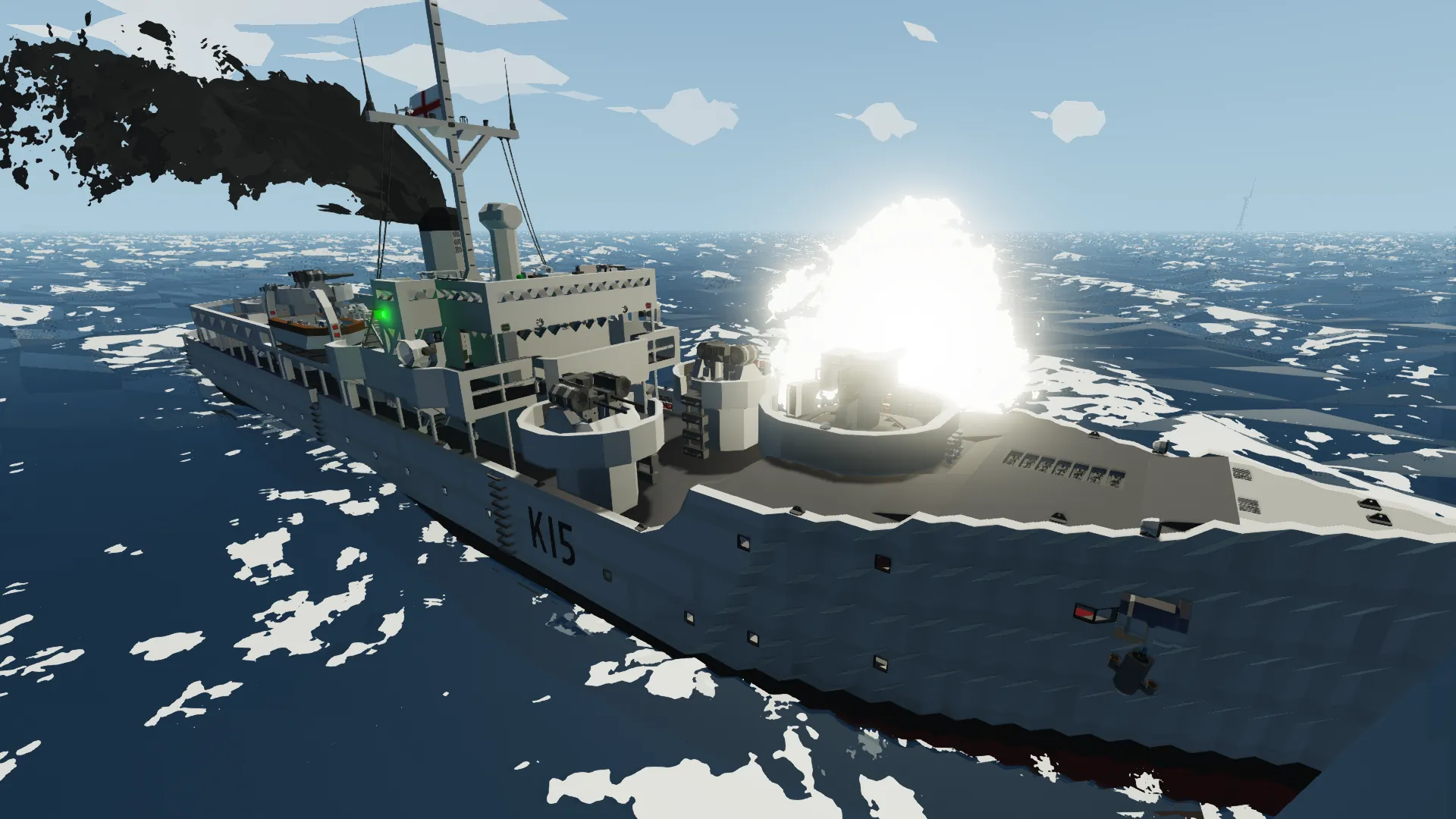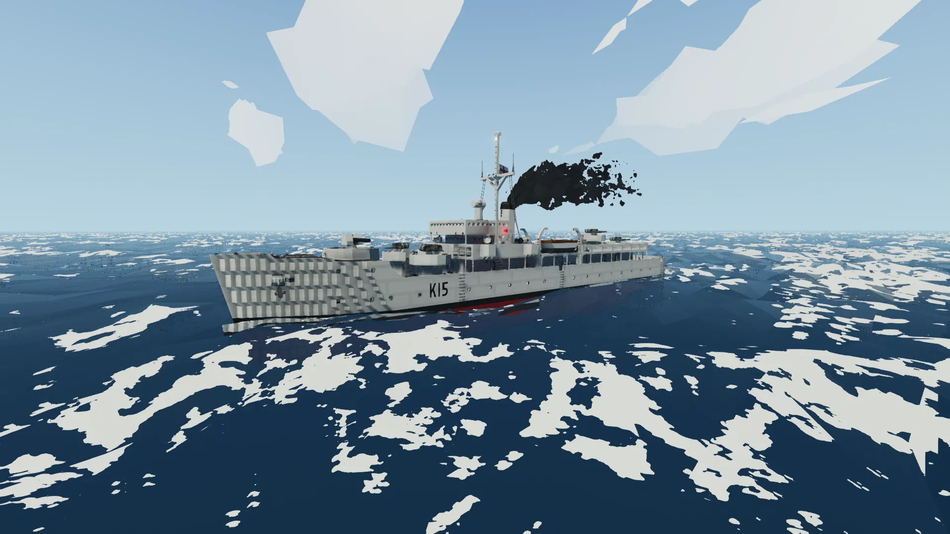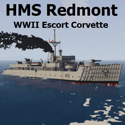 HMS Redmont (K-15) is the lead ship of the fictional Fief-class corvettes, inspired by the real Isles and Flower-class corvettes of the Royal Navy. Designed to be built quickly in conventional shipyards and used to escort convoys, the Fief-class has 3 features which set them apart: a sophisticated and accurate fire-control system, an automated and effective damage-control system, and a high-pressure supercharged steam engine. This boiler, engine, and screw setup is both (very) fuel efficient and (VERY) fast for such a small vessel, enabling this little ship to keep up with larger fleets or chase down submarines. They have proven to be surprisingly durable and lethal in combat, in addition to being useful for troop transport or SAR missions!