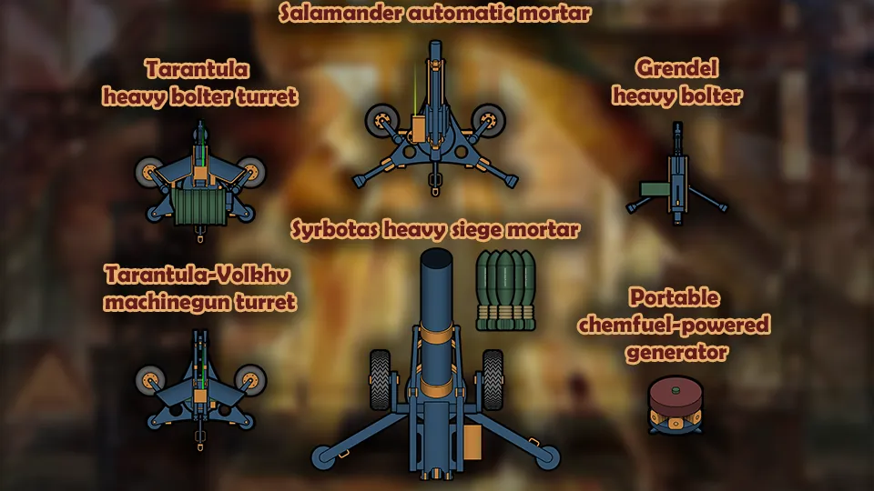 Living as clans aboard cyclopean forge-ships, the Vagar are an entirely void-borne people. Because of this, they rarely employ static weapons other than the Tarantula turrets, armed with heavy bolters. Nevertheless, Vagar warsmiths have designed a number of mortars which are intended to be sold to mercenaries, warlords or an occasional colony on the Rim.