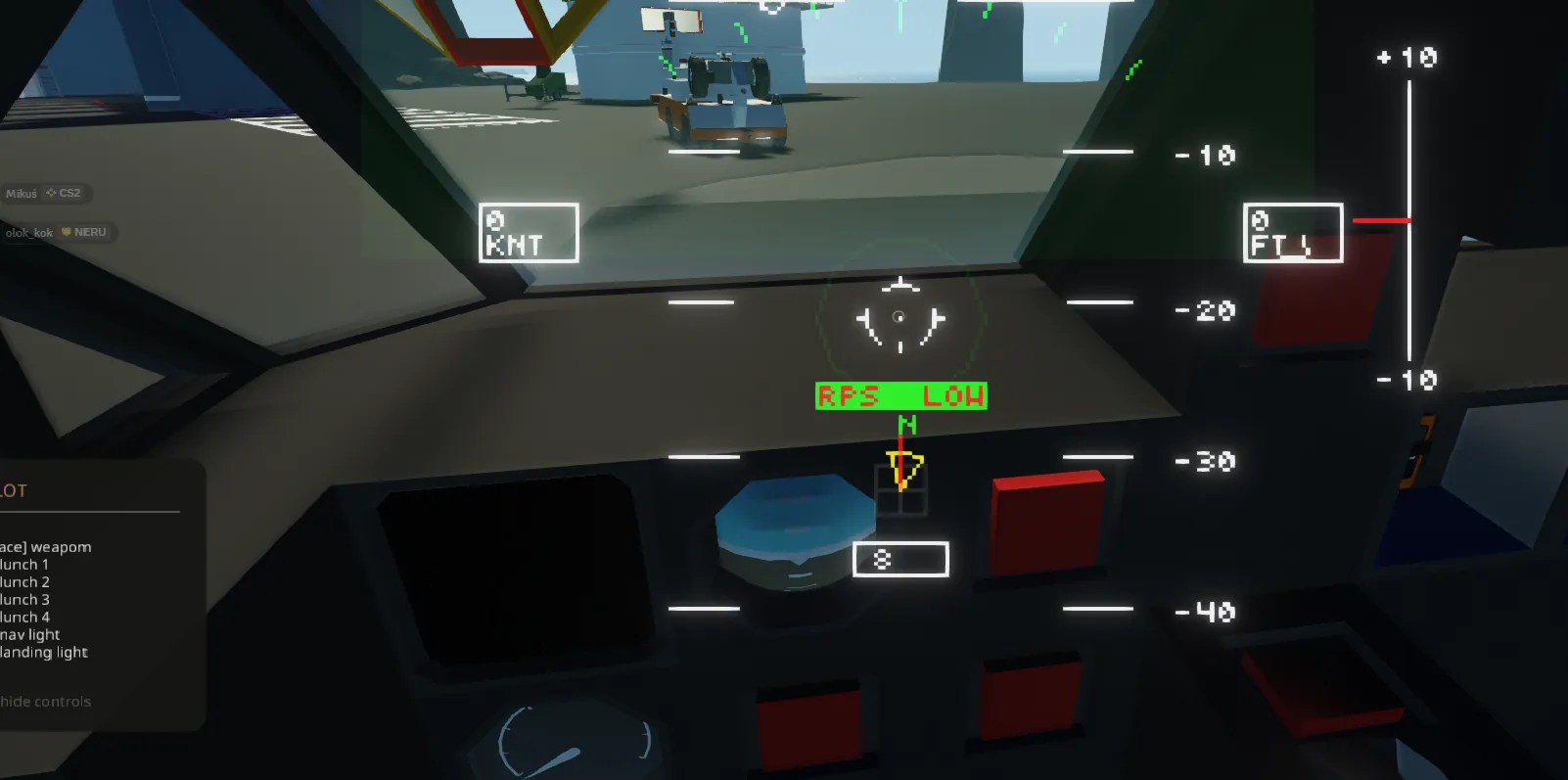 -gyro -nav light -cab light -4 rocket -1 heavy auto canon -1 pilot seat -1 co-pilot seat -2 pasangers seat -jet engine -transporder locator -transporder -2 refile and 2 ammo -2 glock and 2 ammo