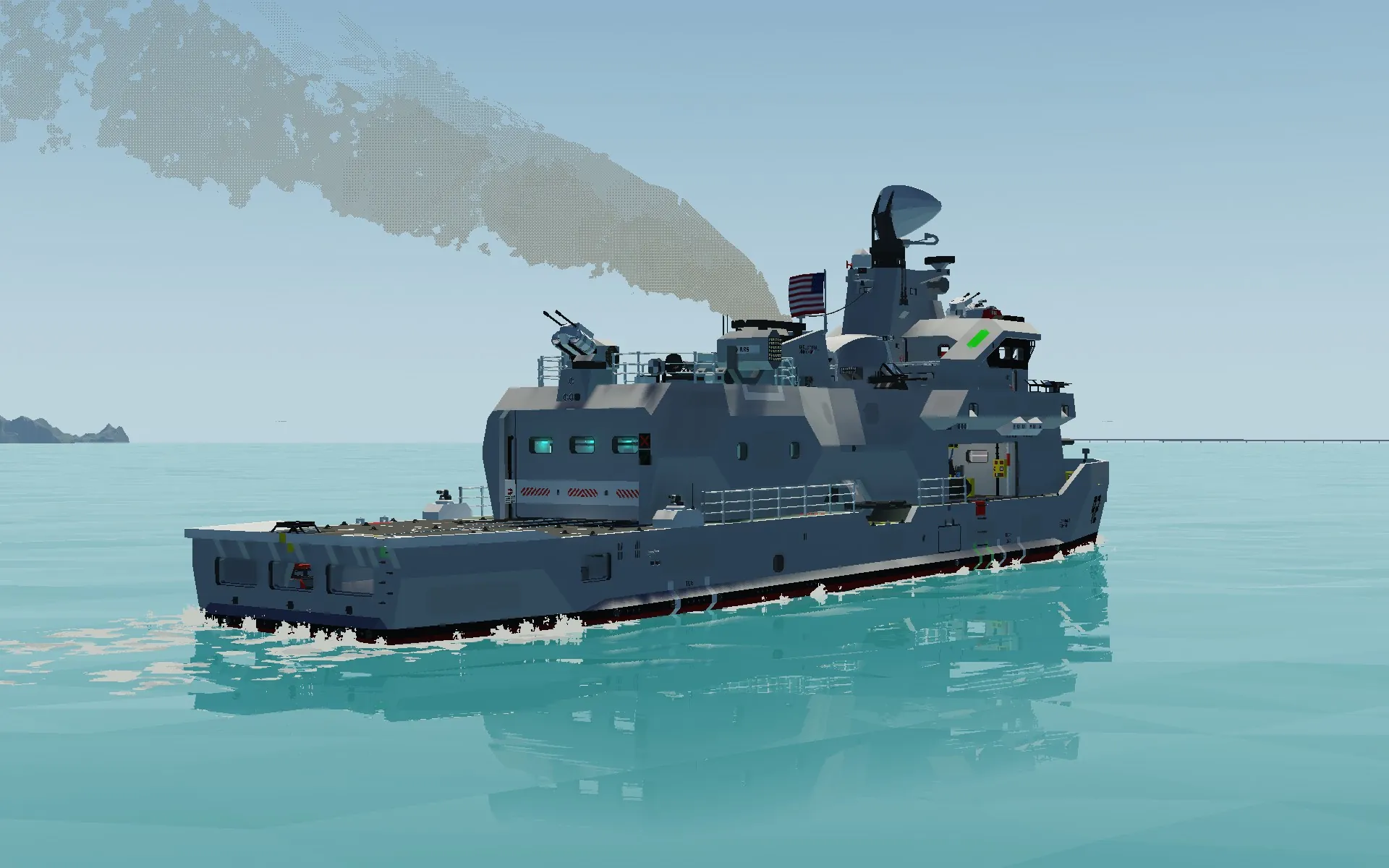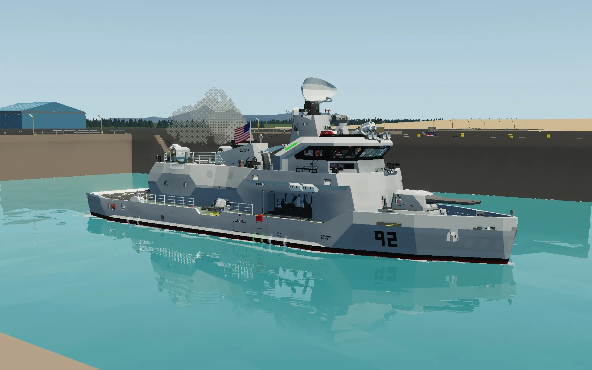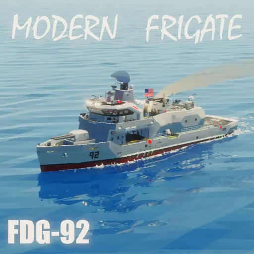 FDG-92 is a light frigate and interceptor. Capable of going 55 Knots, this is the perfect ship to track down and hut targets at sea, or just escort your fleet. The frigate sports 2 heavy artillery cannons and a double walled hull, while also holding two RHIBs and a hangar, this ship is a pleasant combo of Sport and Dangerous. Designed for a smaller crew, this ships principal design was to hunt flag ships, provide escorts, and offer special mission support. The ship is loaded with weapons, and countermeasures, and can probably outrun most ships on the sea, as usual my ships are an assault on your computer so I do apologize, but it does look cool!!