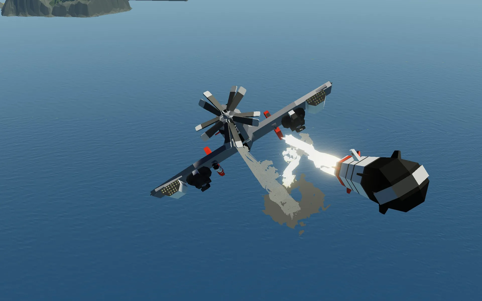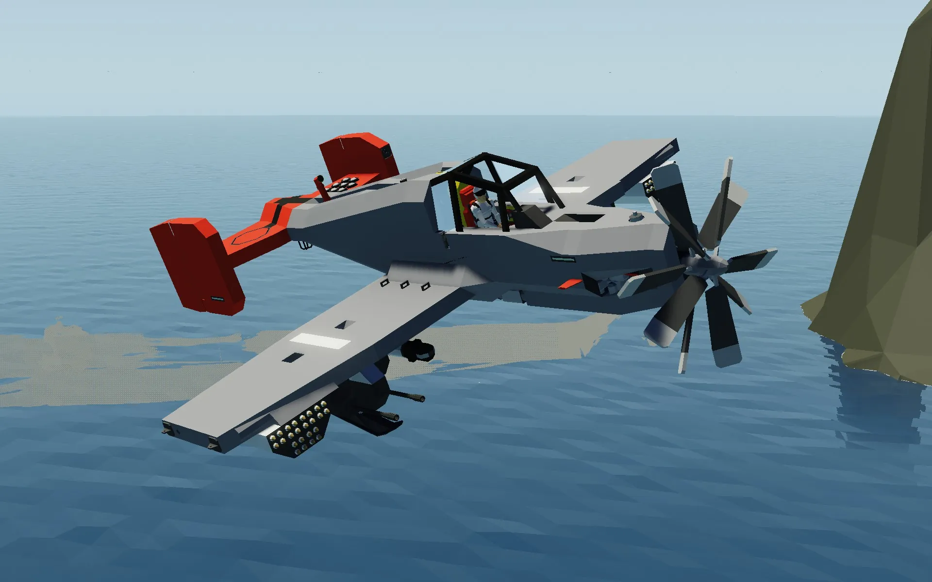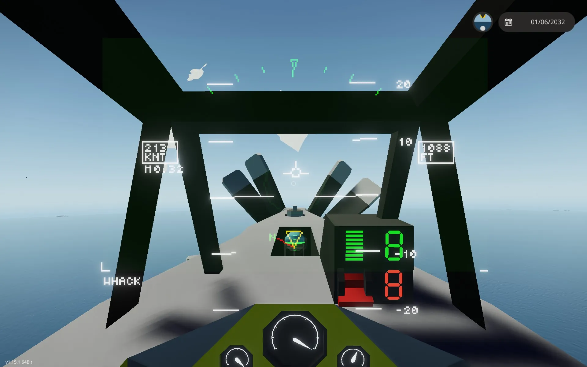 The Plane is as simple as possible, using basically only my universal helmet hud. The plane also features auto chaff and a gyro, but pretty much nothing more. You will notice a landing hook, again this is because the plane is meant to be a parasite fighter for a plane, not on the ground.