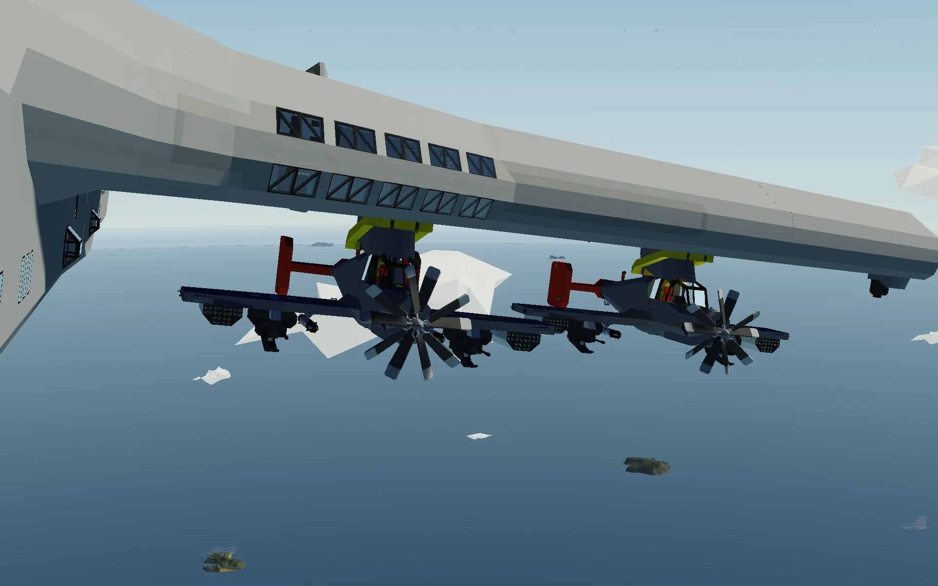 This is designed to be a modernized version of a WW2 airframe. The concept of this plane is to be light, cheap, and low on logic. There are no gear, but skis because the primary use of this plane is to ride under the wing of my upcoming flying carrier project. This plane features a lot of guns and fuel and that is about it.