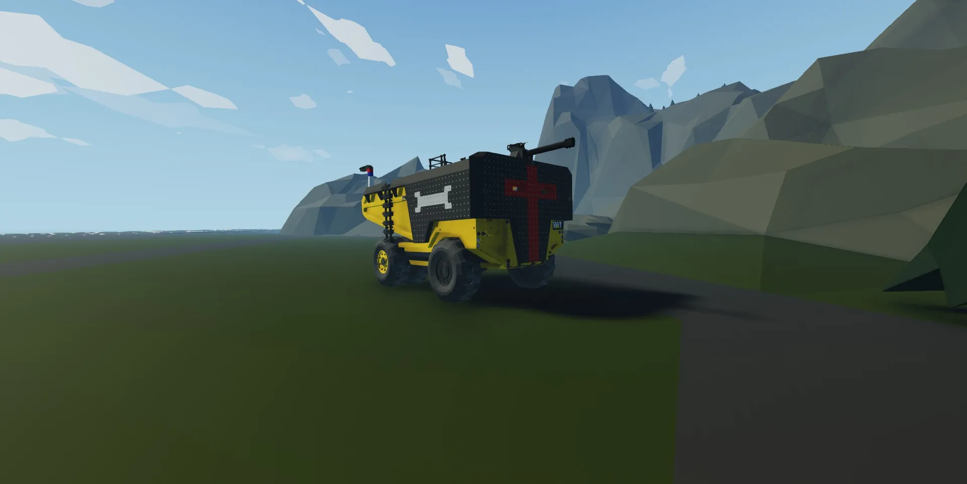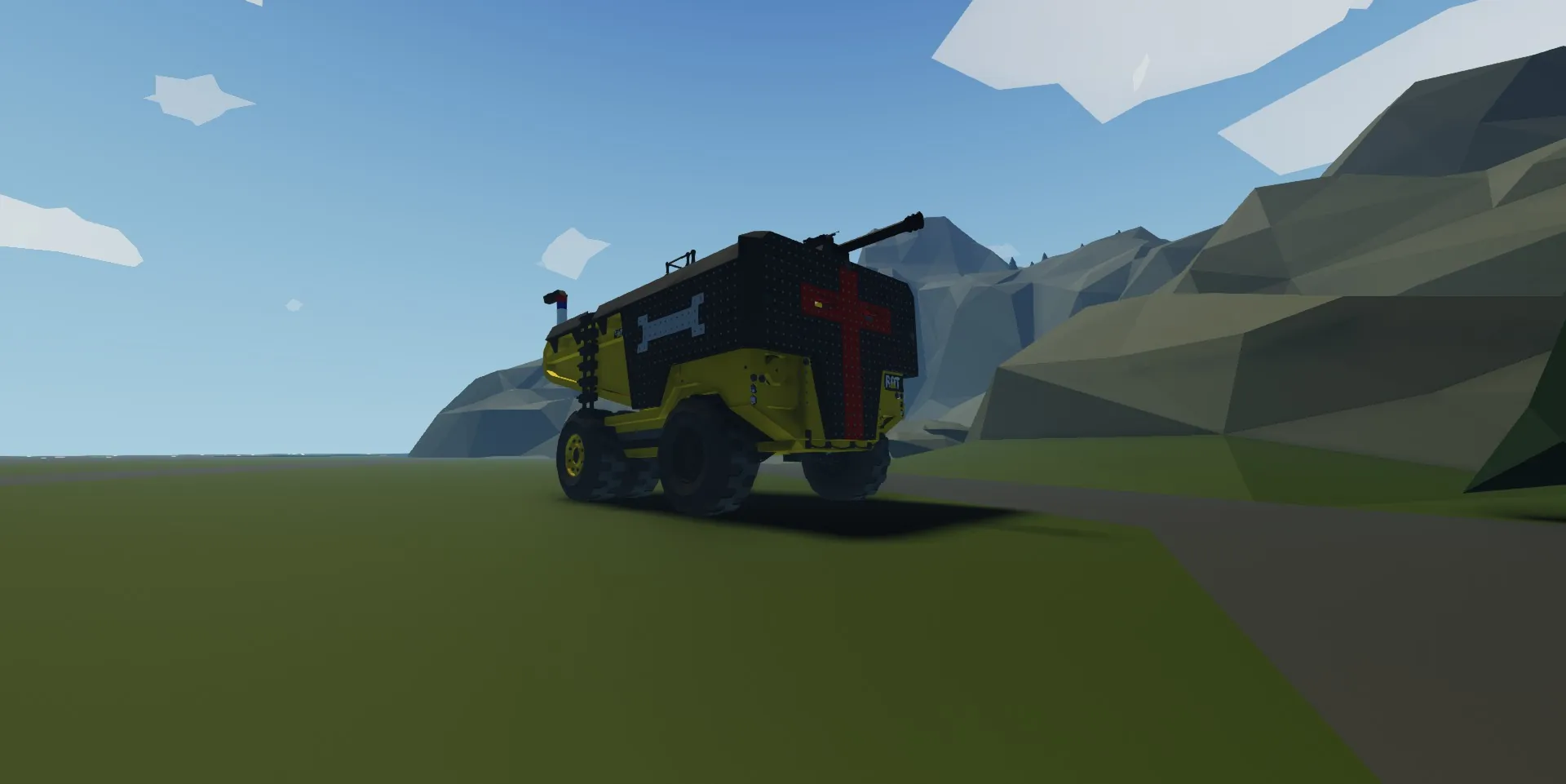 The Golden Spaniard a heavily modified RAT 800 Dump truck though some people are calling it the Killdozers Second Coming but thats not why we modified this one we modified it for ram ability and most auto cannon resistance Survival not guaranteed if hit with anything stronger than a heavy auto cannon
