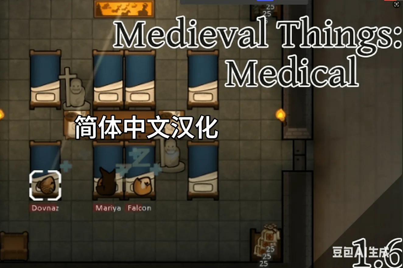 Medieval Things: Medical中世纪治疗床扩展简中汉化 作者:只会偷吃的厨师喵 添加了中世纪系列的医疗床模组,效率接近原版医疗床。并且添加了草药制作的治疗桌可以提高治疗效果,玩家可以使用草药制作更高效率的药酒用来治疗,效果比草药好,比工业医药差一些,但可以量产。 添加了新的娱乐建筑和方式:中世纪剪影盒 具体科技可以在新科技菜单中解锁。 本模组适配中世纪2以及中世纪大修系列玩家使用。