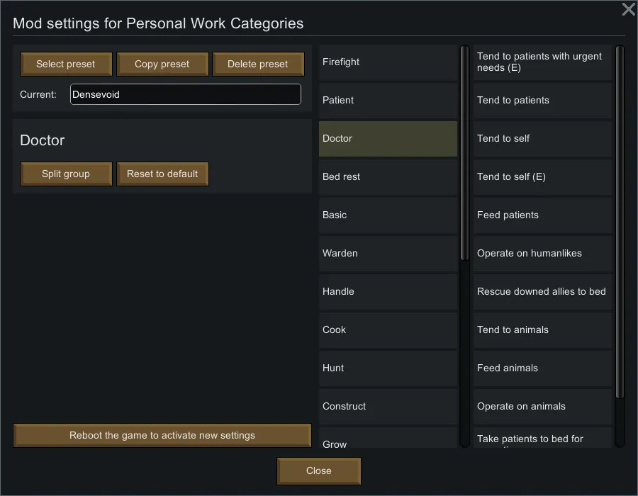 The mod allows you to optionally change the structure of these groups. Thus, it becomes possible to set priorities for the most important work independently.
