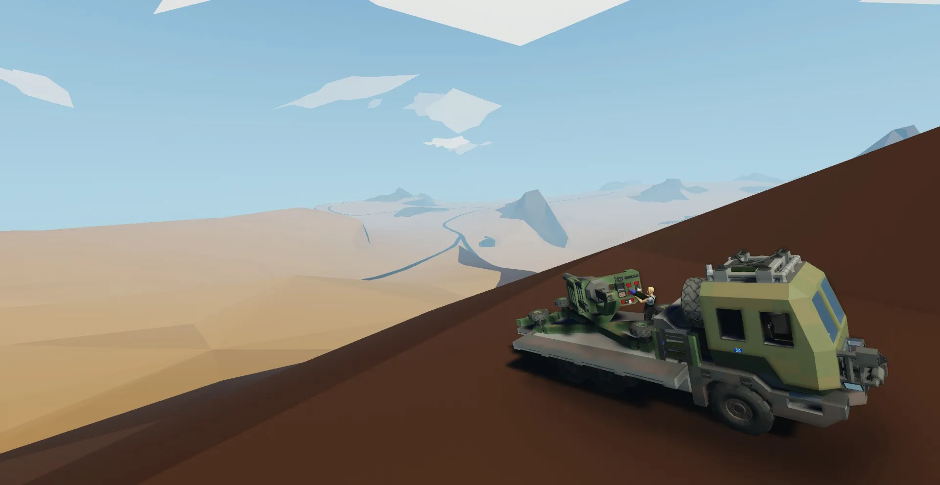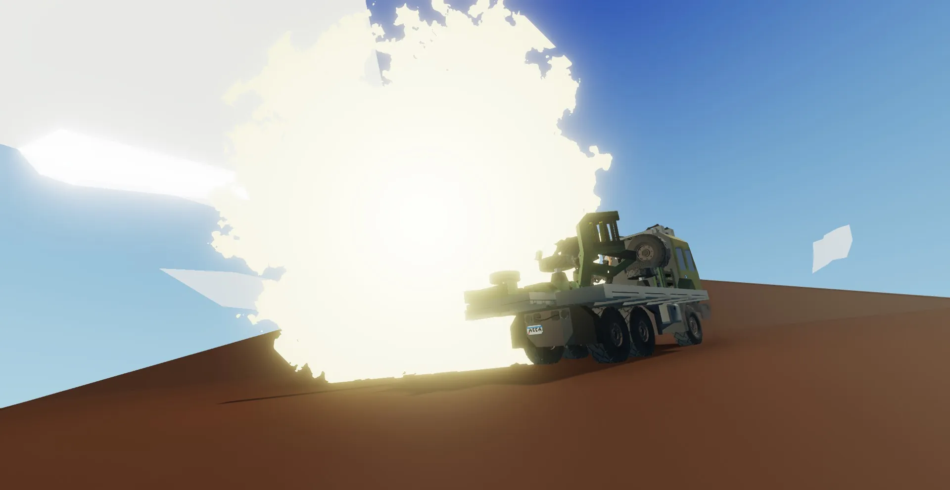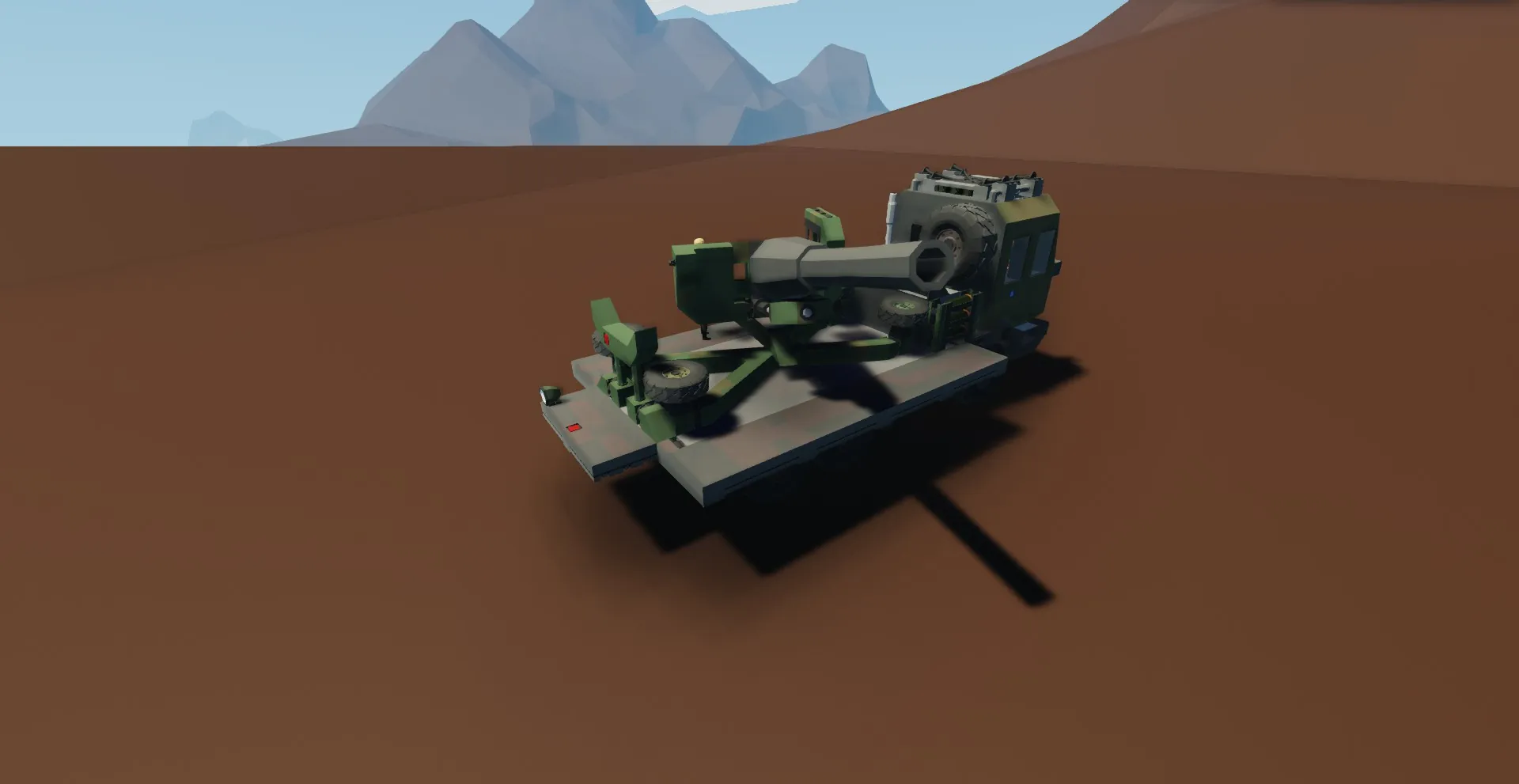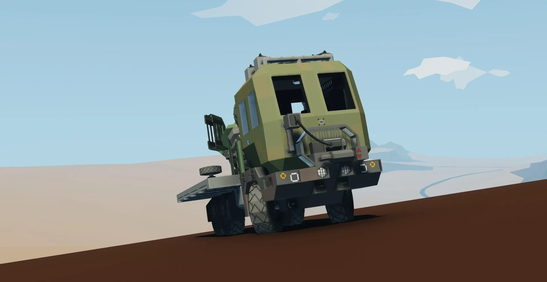 Additions include a front mounted winch, roof stowage, cabin refurbishment, and the addition of a mounted tow-able 155mm artillery piece. In total, the vehicle carries 12 shells, 6 of which are HE, 3 are AP, and 3 more are frag rounds (I'll be adding another variant soon with a munitions trailer for added ammunition capacity).