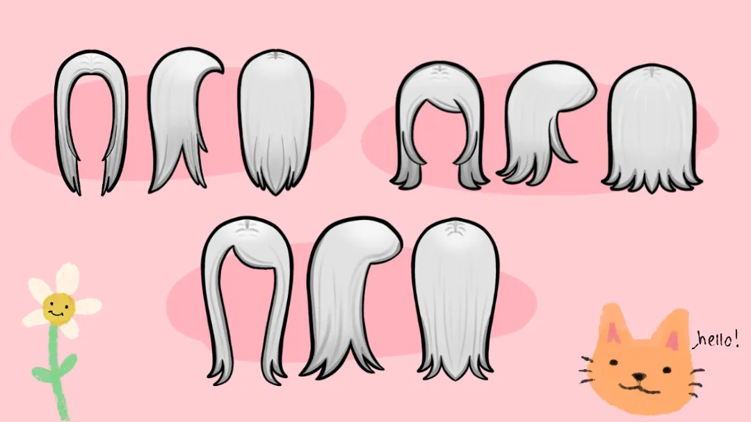 I wanted a simple long straight hairstyle and the 2 other hairstyles were made with my favorite long term Rimworld character in mind.