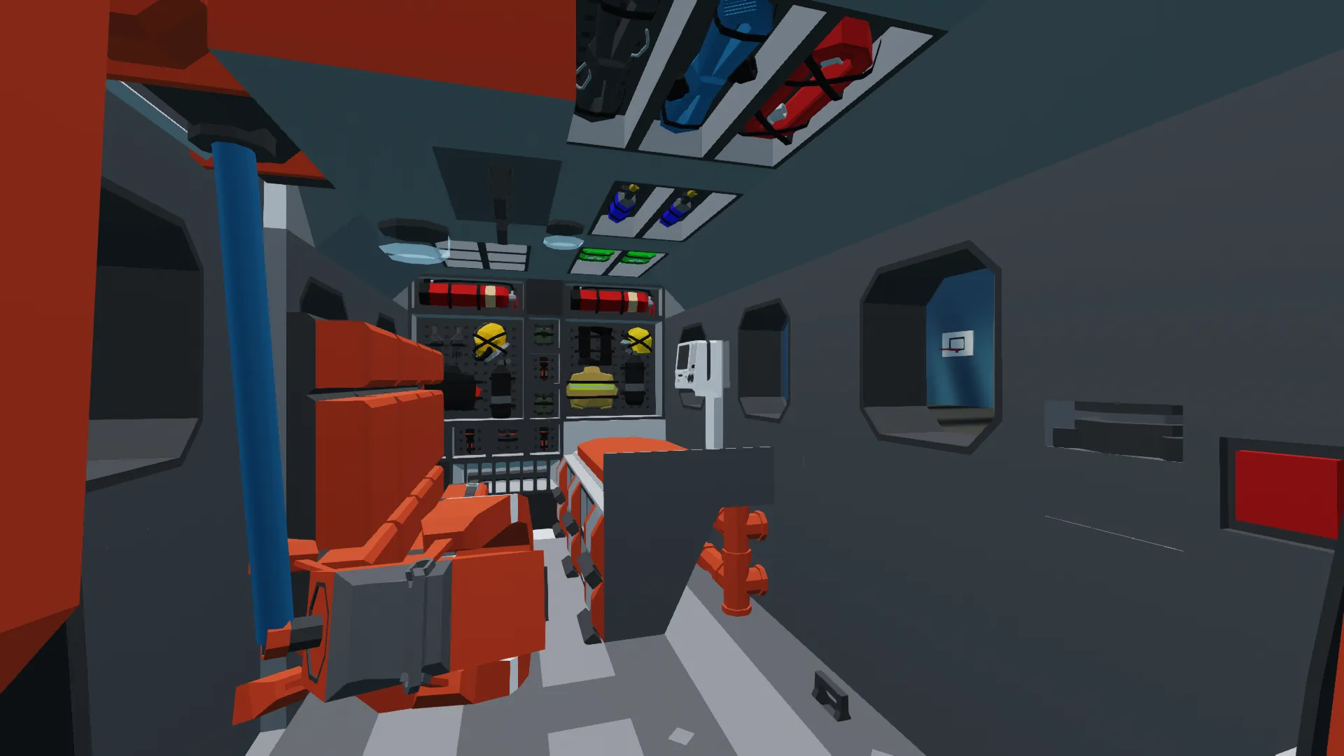 It features an altitude hold system, autopilot, cruise mode, a searchlight, and winch. It has a medical bed and seven additional seats for passengers along with heaters. There are plenty of supplies including fire extinguishers, firefighting equipment, diving equipment, ropes, cables, welders, defibrillators, medkits, and more.